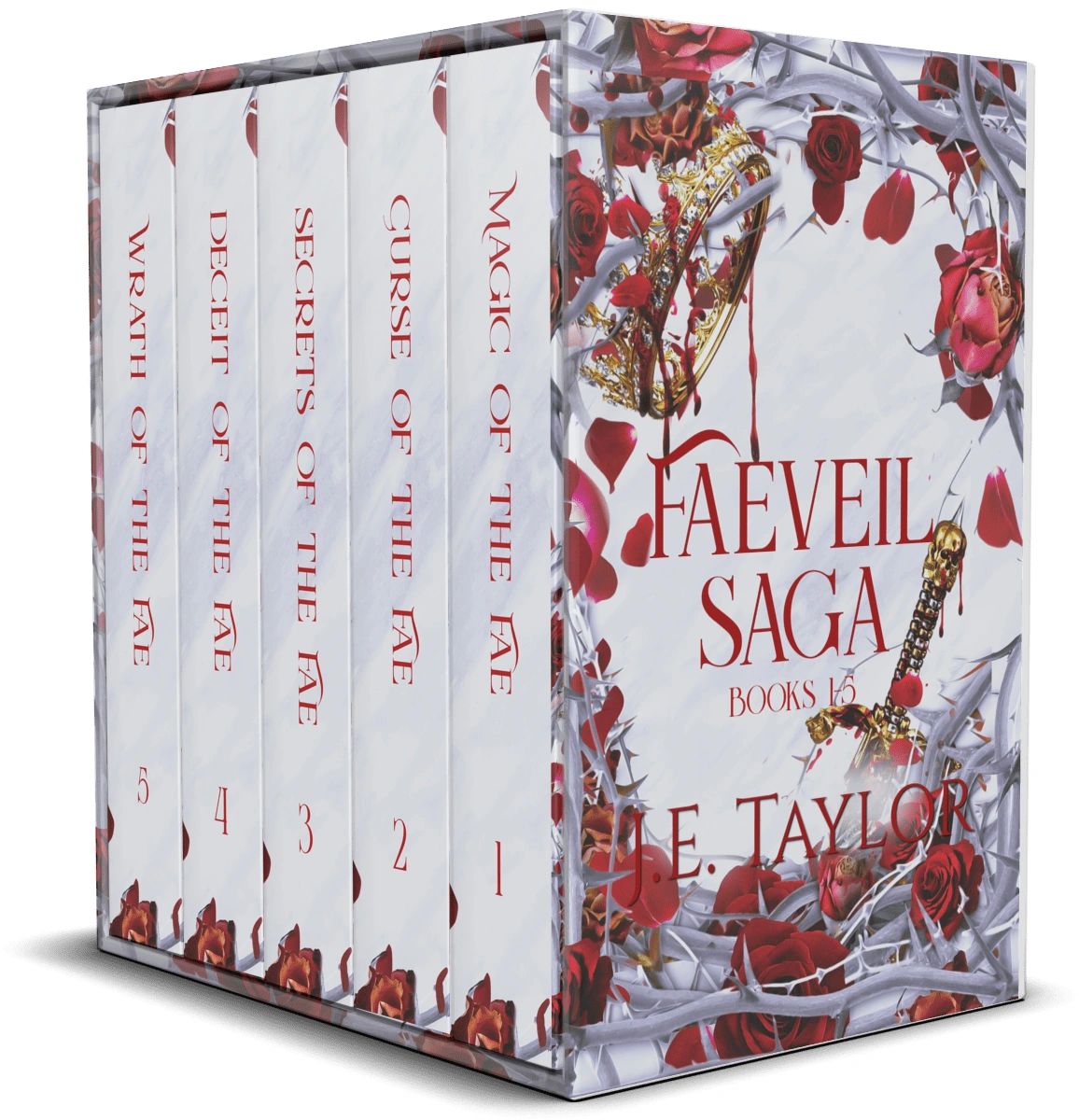 The Faeveil Saga is a sweeping five-book romantasy epic that spans two generations and two shattered worlds.